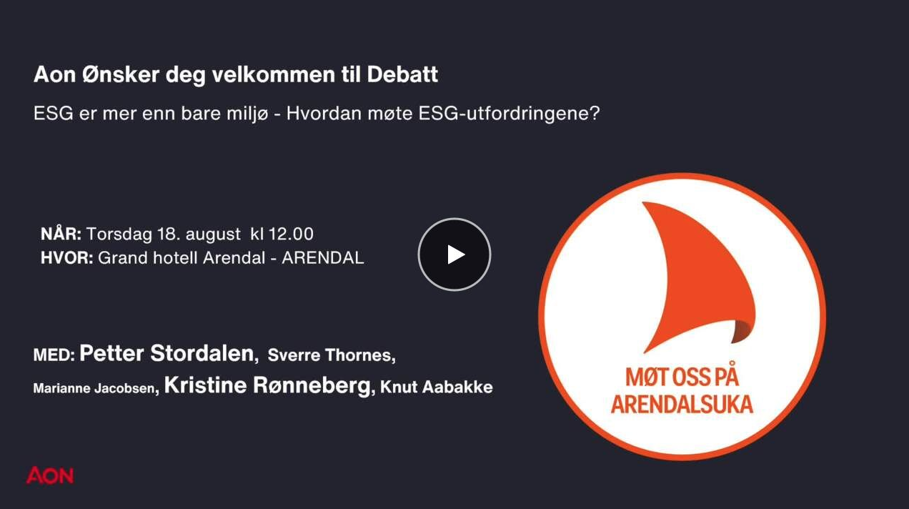 ESG blir stadig viktigere for bedrifters forsikringsprogram og tilgang til kapital. Samtidig ser vi at fokus på miljø alene er ikke nok – den sosiale delen av ESG blir stadig viktigere. Hvordan kan bedrifter møte ESG-utfordringen gjennom å støtte sine ansatte og styrke egen organisasjon? Kan HR være katalysatoren for å integrere ESG-praksis hos bedriftens ansatte?
